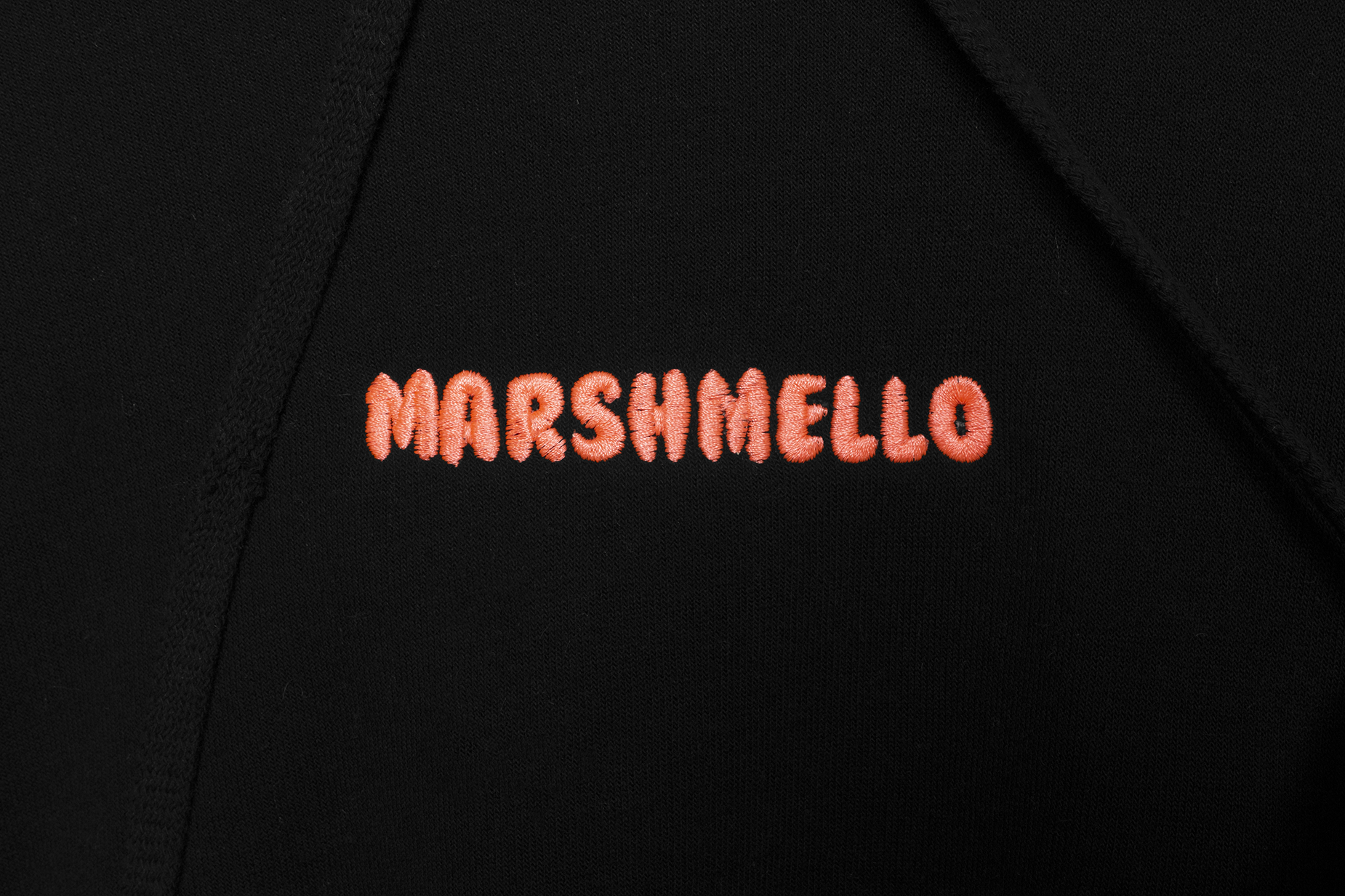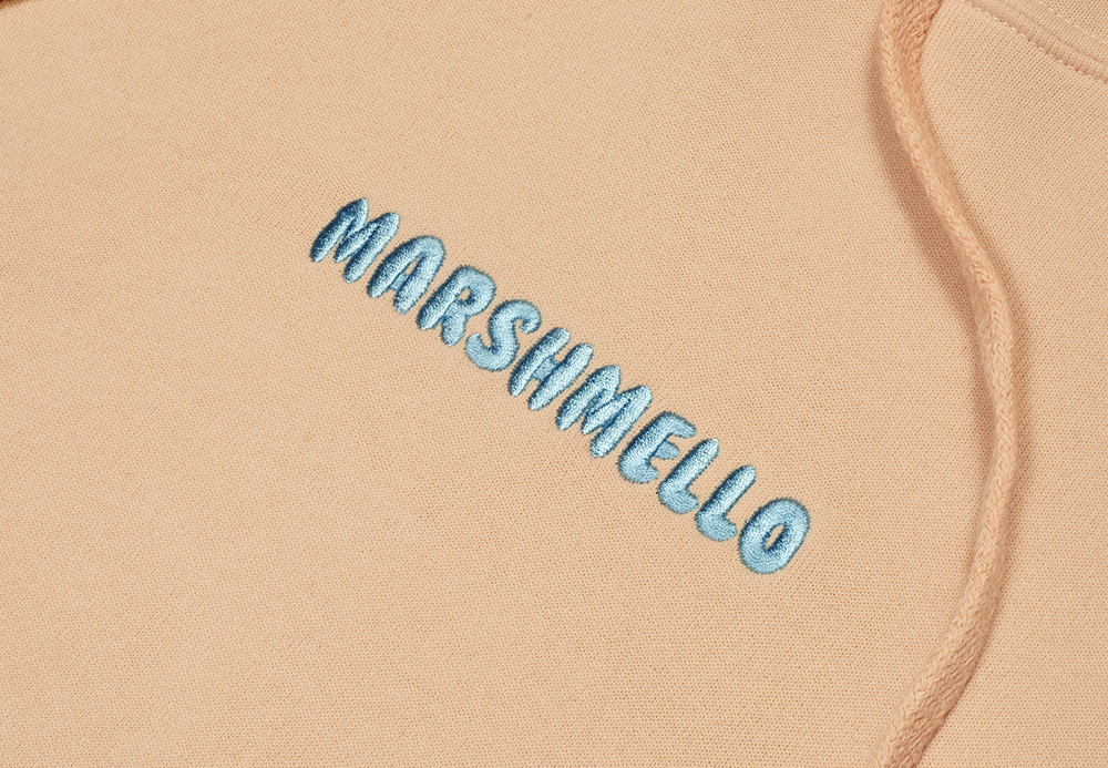 • Metallic pink & aqua blue Marshmello heavy stitch logo embroidery on front